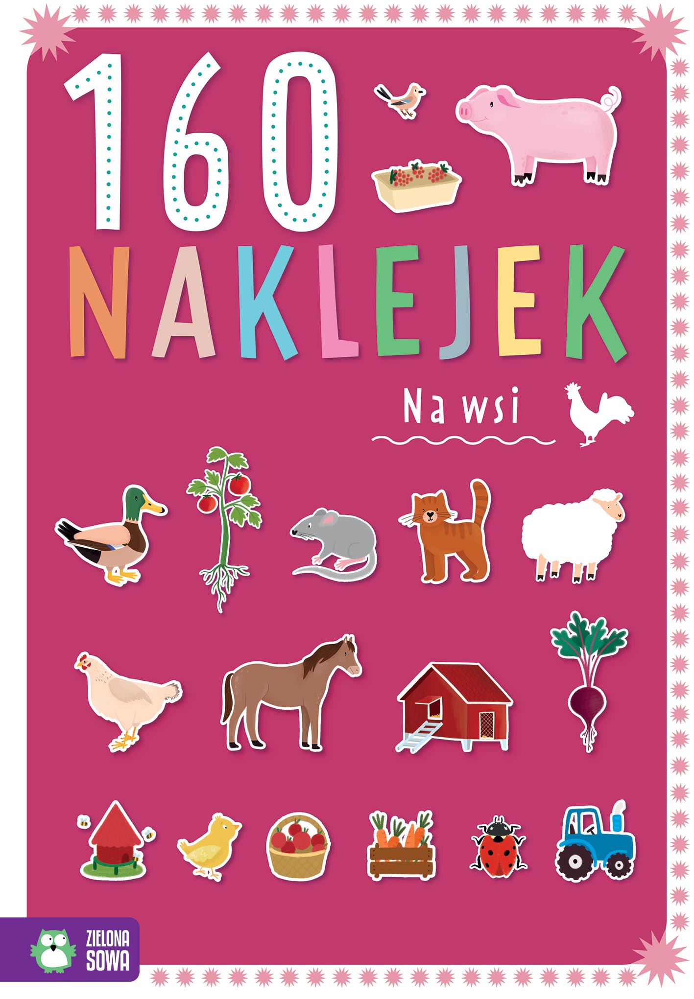 „160 naklejek” to seria rozwijająca spostrzegawczość, wyobraźnię i koncentrację dziecka. Różnorodność zadań sprawia, że maluch szybko rozprawi się z nudą, a poprzez zabawę wzbogaci swoją wiedzę na temat wsi i jej mieszkańców. Część naklejek jest przeznaczona do wykorzystania podczas dowolnych zabaw wymyślonych przez dzieci.