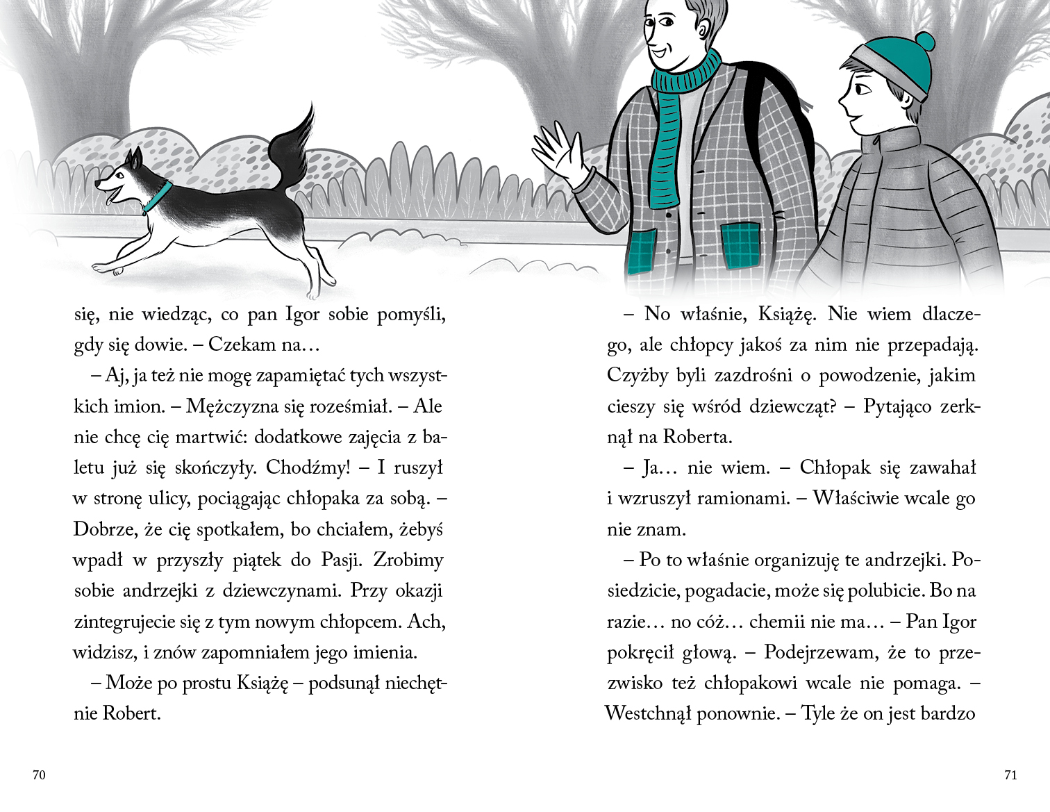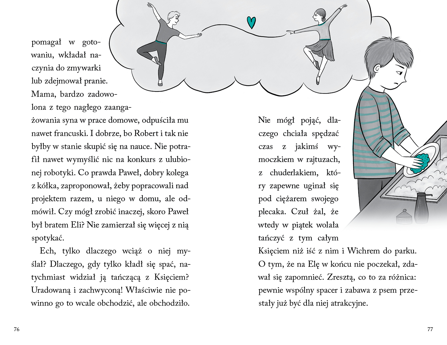 Robert ma wrażenie, że nic mu ostatnio nie wychodzi. Po kontuzji ręki nie może wykonywać wszystkich ćwiczeń, ma też zaległości w szkole. Do tego Ela nie ma dla niego czasu. Gdy do Akademii Tańca dołącza Marcin – utalentowany, pewny siebie i uwielbiany przez wszystkich chłopak – sytuacja jeszcze bardziej się komplikuje. Marcin od wielu lat trenuje akrobatykę, świetnie tańczy i na zajęciach tworzy duet z Elą! Czy Robert poradzi sobie z zazdrością? A może przez nowego rywala zrezygnuje z zajęć akrobatyki?