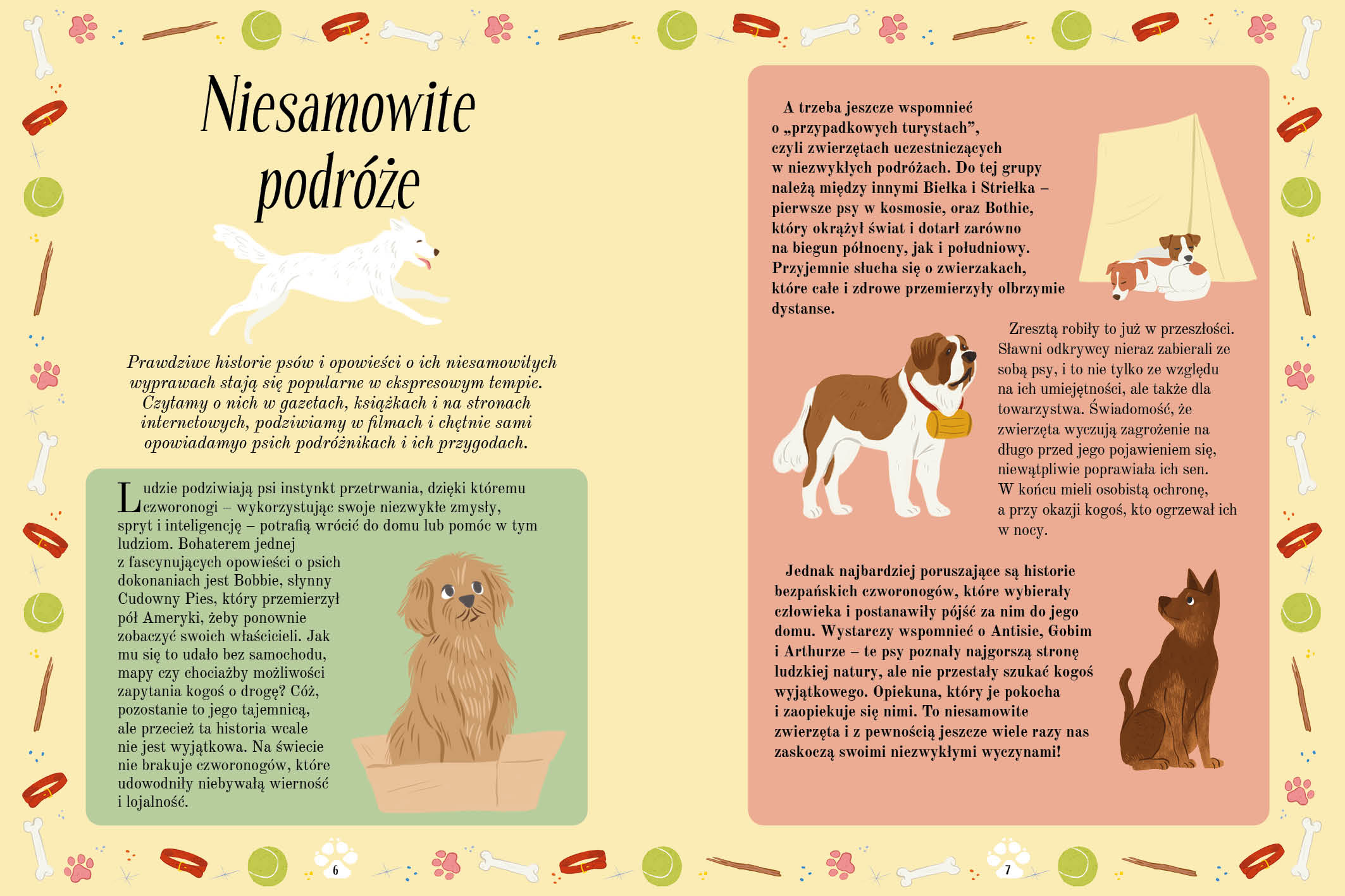 Wyjątkowy zbiór prawdziwych opowieści o psiej odwadze, lojalności i inteligencji rozgrzeje serca wszystkich miłośników czworonogów. Poznaj kochającą góry Merę, charcicę Jasmine, która opiekowała się jelonkami i lisami, a także szalejącego na deskorolce buldoga imieniem Otto. Na kartach tej książki poznasz 30 psów z całego świata – czasami niezwykle utalentowanych, kiedy indziej dzielnych bądź sprytnych. Jedno jest pewne: wszystkie mają do opowiedzenia naprawdę niesamowite historie.