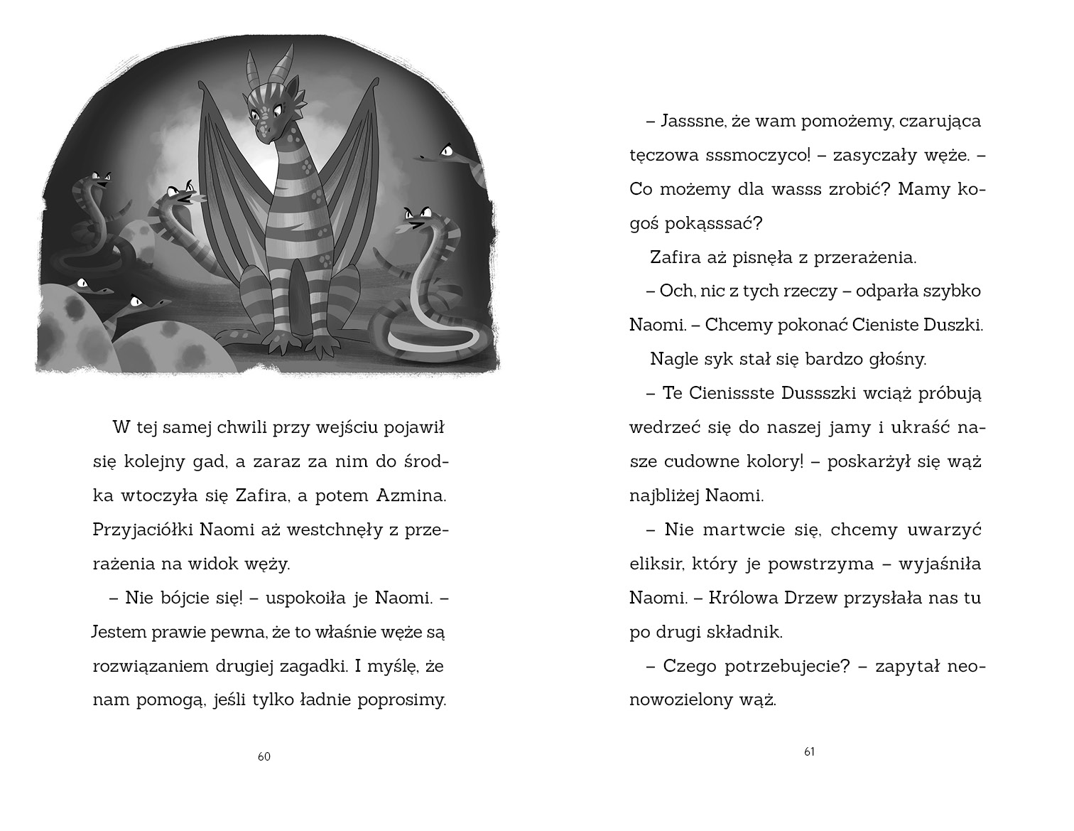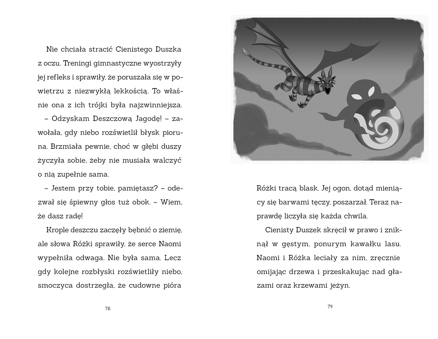 Ale nie wszystko jest takie, jak się wydaje. Moc Cienistych Duszków rośnie… i możliwe, że nie działają same. Naomi musi wykorzystać całą smoczą magię, której się nauczyła, aby poprowadzić Lśniące Smoczyce przeciwko nowemu zagrożeniu. Czy uda jej się uchronić Magiczny Las i pokonać tajemniczych przeciwników?