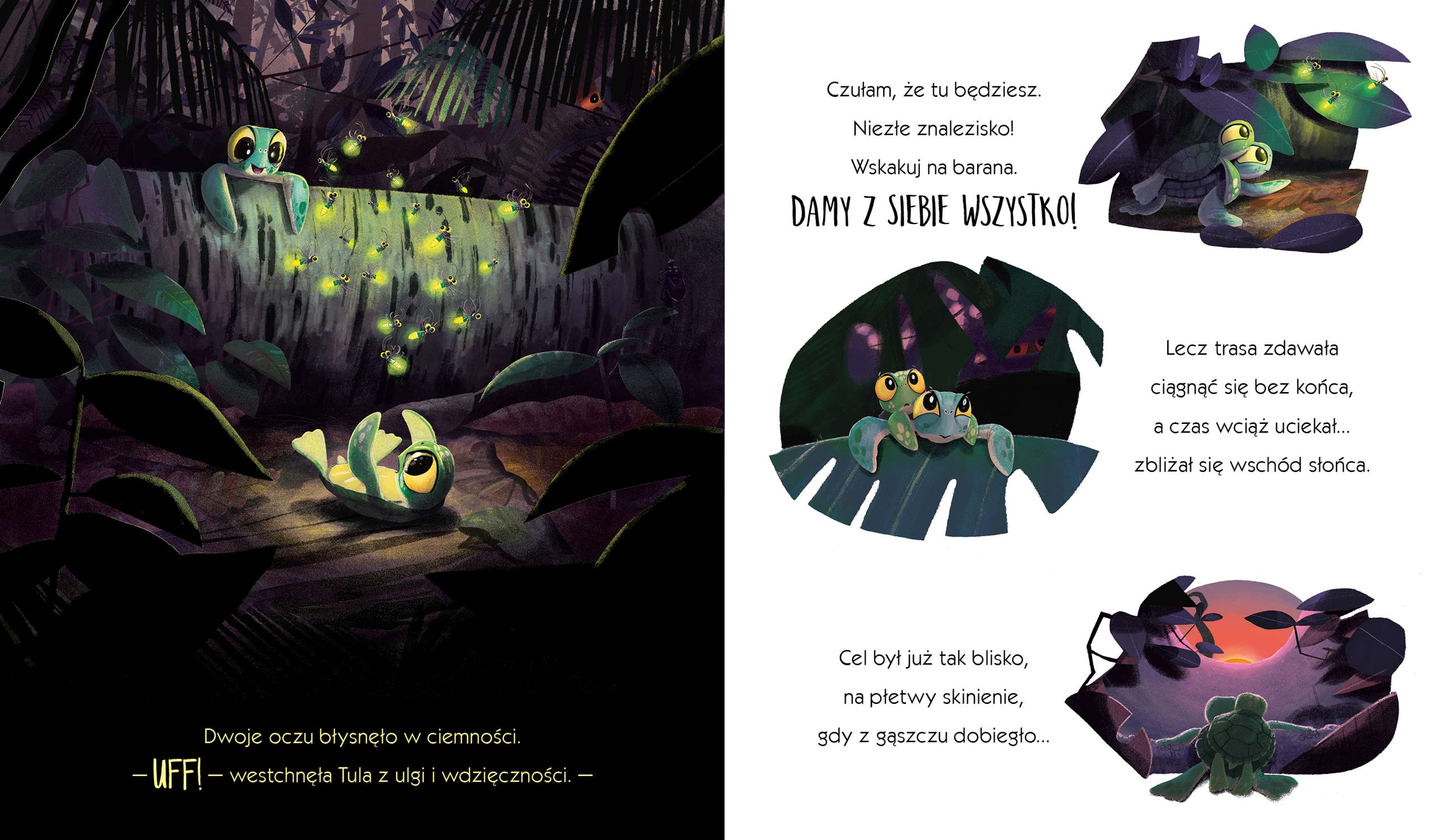 „Żółwie, które dały radę” to kolejny picturebook autorstwa Jima Fielda i Rachel Bright (twórców m. in. bestsellerowych „Mysz, która chciała być lwem”, „Koala, który się trzymał”, „Wiewiórki, które nie chciały się dzielić”). Obok mistrzowsko przetłumaczonej przez Barbarę Supeł rymowanej historii główną rolę odgrywają w nim ilustracje. Niezależnie od wieku trudno oprzeć się wesołej szacie graficznej oraz pogodnej historii, która dodatkowo zostawia czytelnika z nienachalnym, a bardzo ważnym przesłaniem.